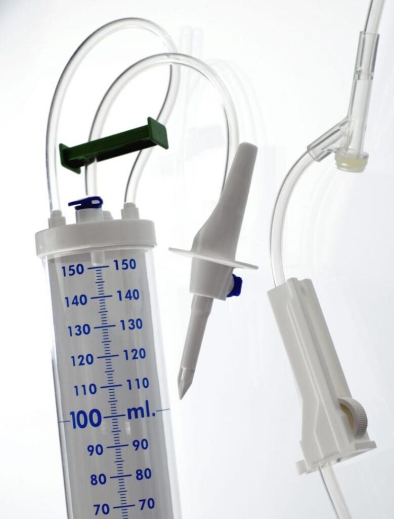 3. محفظه مدرج (Burette Chamber): یک لوله شفاف و مدرج معمولاً با ظرفیت 100 میلیلیتر که محل پر شدن دقیق دارو یا مایع تزریقی است.